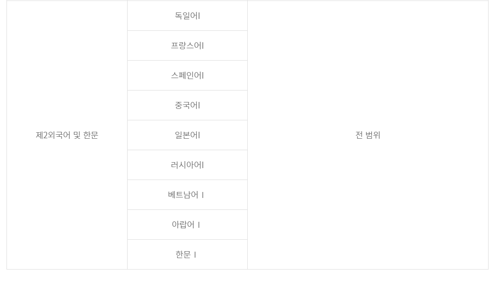 국어는 화법과 작문, 문학, 독서, 언어와 매체 전범위가 시험 출제 범위입니다.