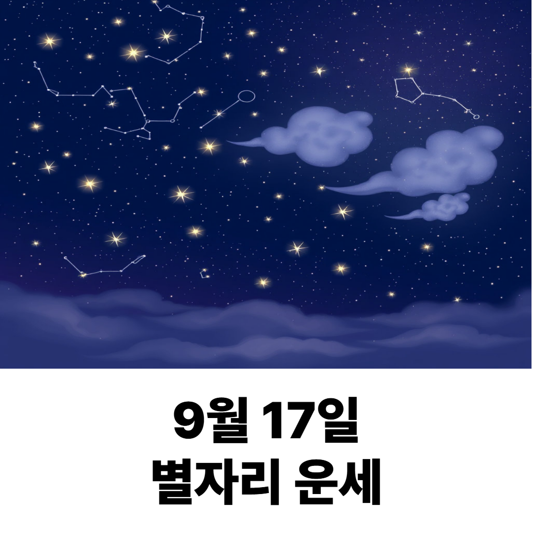 오늘은 2025년 9월 17일, 밤하늘을 수놓은 별들이 우리에게 어떤 이야기를 속삭여 줄지 ✨별자리 운세✨를 통해 함께 알아볼 시간이에요!